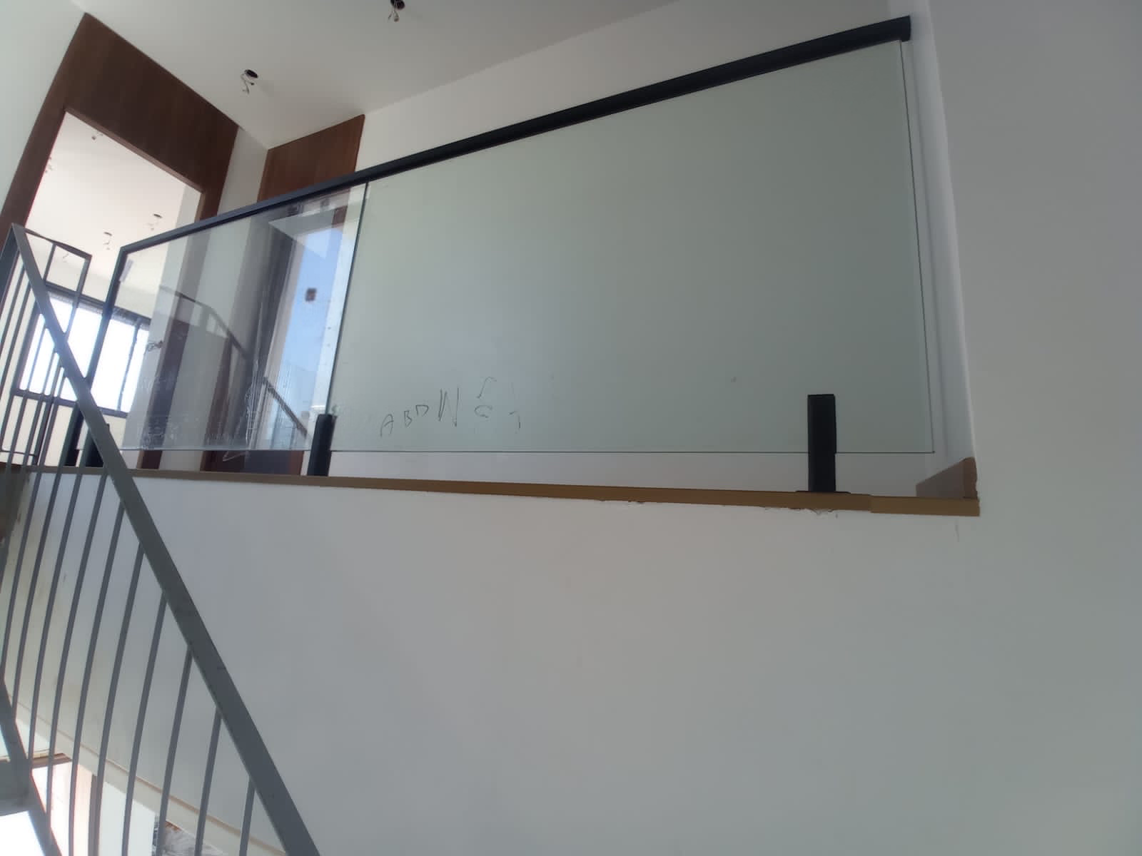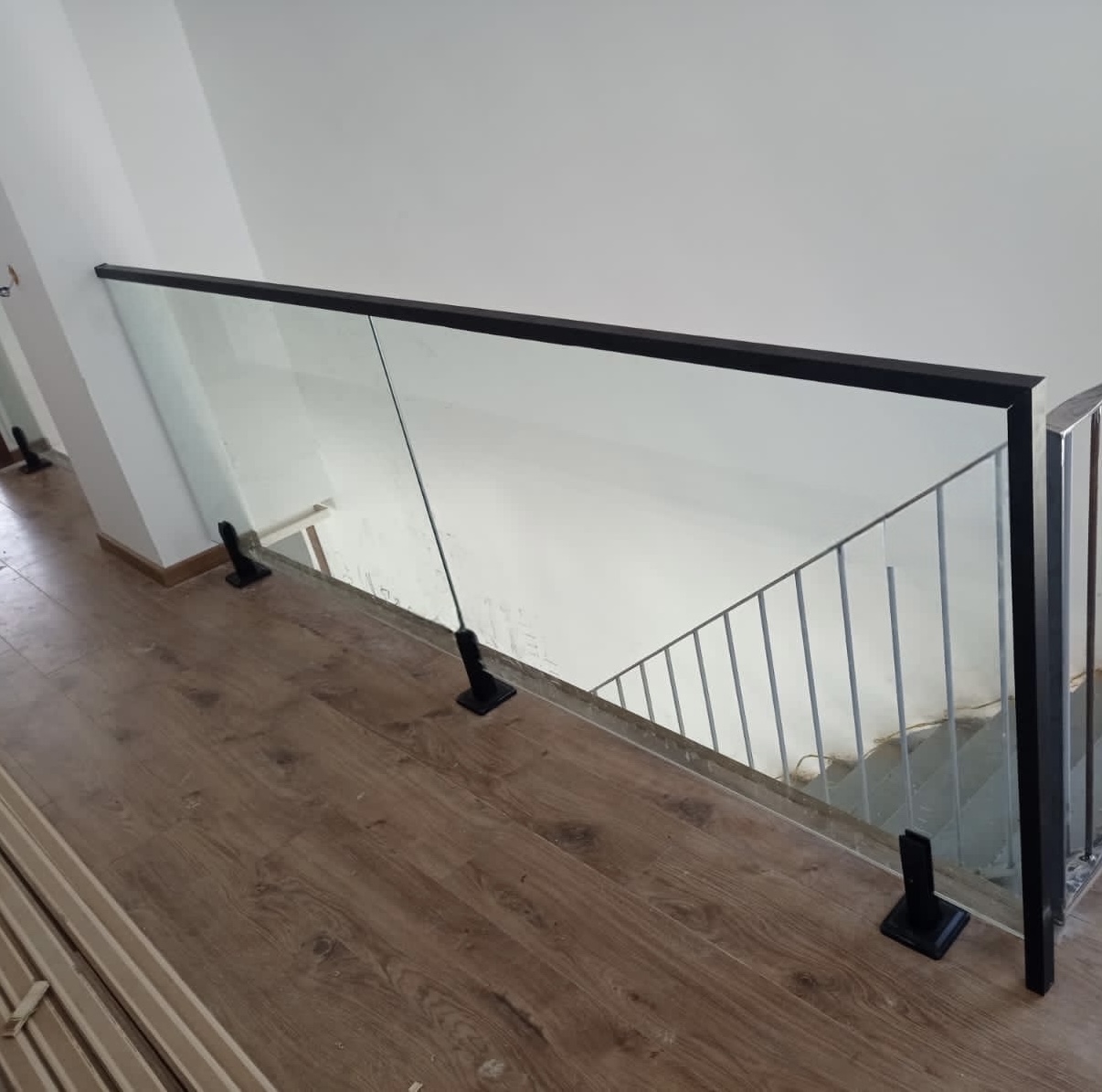 Fabrication et installation de garde corps en verrre feuilleté 8.8.2, fixation avec support en acier inoxydable noir avec passe a main en aluminium.